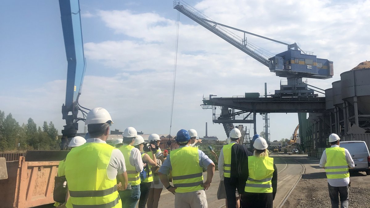 Der erste Stopp während der Hafenrundfahrt führte zum Baustoffhersteller Blasius Schuster, wo Geschäftsführer Daniel Imhäuser einen Einblick in die Abläufe seines Unternehmens gab: „Mit dem Osthafen ist Frankfurt eine Vorzeige-Stadt für Kreislaufwirtschaft und moderne Güterverkehre. Sand und Kies für die Bauwirtschaft kommen mit Schiffen und Zügen direkt in die Stadt. Alt-Schotter wird schon heute über das Gleis in den Osthafen geliefert und dort zum hochwertigen Recycling-Baustoff für den städtischen Straßen- und Tiefbau. Im Bahnverkehr für Schüttgüter wird das Gros der Züge innerhalb eines Tages entladen und wieder voll beladen. Hier tauschen etliche Unternehmen hunderttausende Tonnen Waren- und Stoffströme unmittelbar aus. Zu den Hafen-Innovationen der kommenden Jahre zählt eine Großanlage, um im Radius von wenigen Lkw-Kilometern aus Bauschutt neuen Beton herzustellen. So werden erhebliche Ressourcen und Lieferstrecken für Naturbaustoffe eingespart, die oft mehrere hundert Kilometer betragen. Vergleichbare Strukturen gibt es selten in Europa. Frankfurt bietet mit seinem enormen Potenzial an Bau-Rohstoffen ein Beispiel, wie der Green Deal mit Massengütern funktionieren kann.“