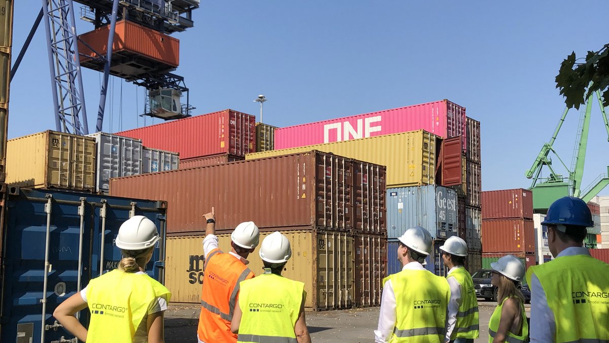 Der zweite und letzte Haltepunkt der Bootsrundfahrt führte die Teilnehmerinnen und Teilnehmer zum Containerterminal der Firma Contargo. Geschäftsführer Christian Eichmeier berichtete: „Als trimodales Container-Hinterland Logistik-Netzwerk ist der Frankfurter Hafen ein idealer Standort für uns. Die Nähe zu unseren Kunden ermöglicht es uns, die Container aus den West- und Nordhäfen größtenteils auf Schiene oder Wasser zu transportieren. Für die letzte Meile zum Kunden setzen wir Lkw ein, demnächst sogar noch emissionsärmer, mit drei vollelektrischen Sattelzugmaschinen.“