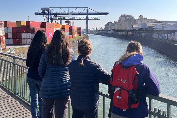 Beim Girls Day 2025 konnten wir bei strahlendem Sonnenschein wieder vier Schülerinnen bei der HFM willkommen heißen. Unsere Hafenmeisterin zeigte den Schülerinnen bei einem Rundgang durch den Frankfurter Osthafen die Vielfalt der Hafenunternehmen. In den Bereichen Bau und Technik, Hafenlogistik, Bahninfrastruktur und beim Hafenordnungsdienst konnten die vier 11 bis 15-Jähringen einen Einblick in die verschiedenen technischen Berufe und Projekte gewinnen. Auch ein Besuch unseres Bahnhof Osthafen und der Werkstatt stand auf dem Programm. Mit dem Dienstfahrzeugs des Hafenordnungsdiensts ging es wieder zurück zum Ausgangspunkt.